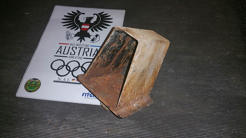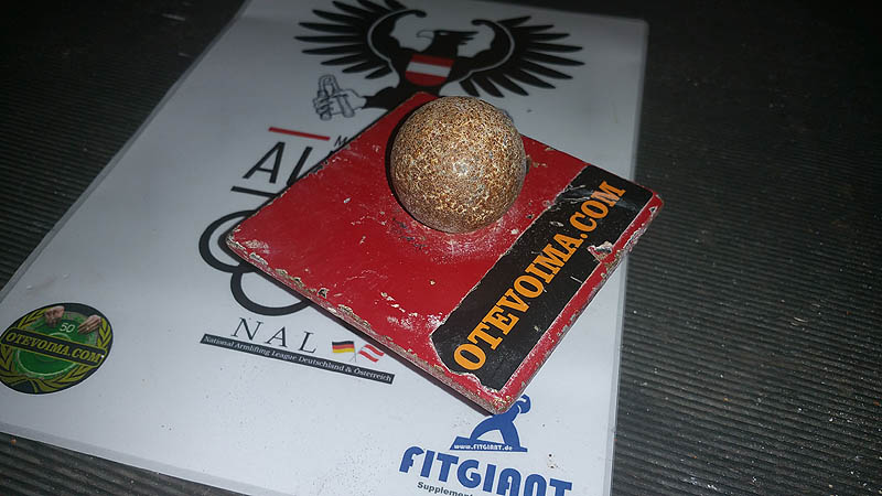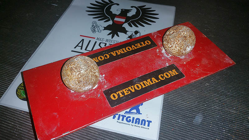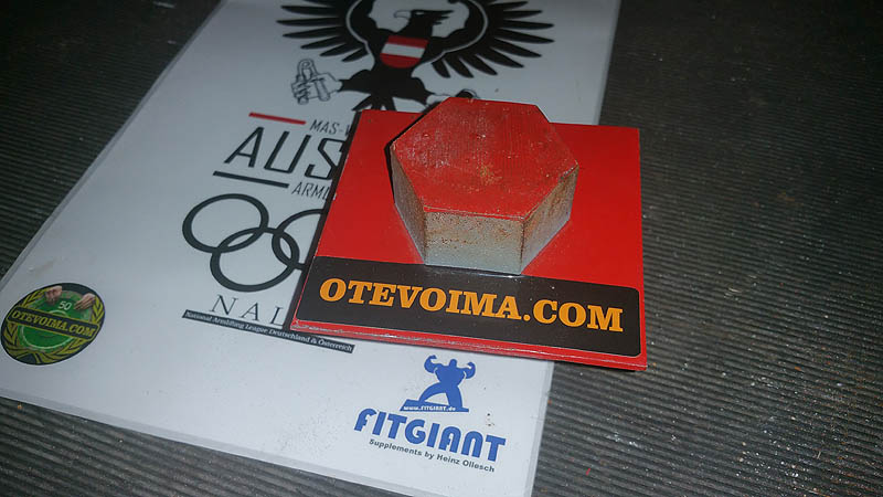Im Wettkampf machen wir damit einen beidhändigen Hold. Die Lasten dafür sind wie folgt, ihr müsst sie für einen gültigen Versuch mindestens 5 Sekunden halten. Es wird mit dem höchsten Gewicht begonnen: 120k, 105k, 90k, 75k, 60k, 45k, 30k, 15k.