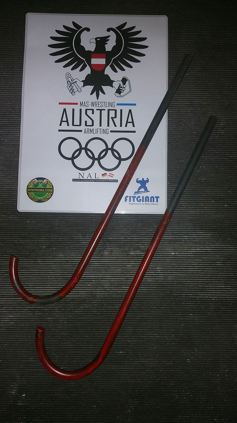 Eine Sonderform der Sonderform ist der Napalms Nighmare. Hier kann man 2 rau lackierte Eisengriffe (1,5", 2", 2 3/8") auf einer geraden 50cm langen Stange anbringen, um die Last 6" hoch zu heben. Hier ist neben hoher Grundkraft auch eine starke Fingerspitze wichtig. Ein guter Lift ist bei 2" 200kg.